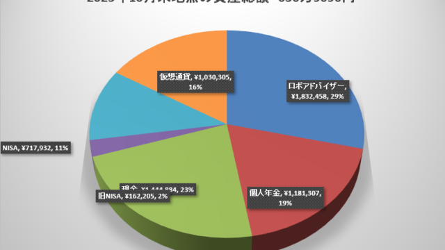 資産状況 [月例報告] 2025年10月末時点のポートフォリオを公開。資産総額は6,369,090円。 2025年11月5日 kazu https://hukugyo-runner.info/wp-content/uploads/2022/12/7150ea5ee74f3799175283bcbc80b3c8.jpg 副業ランナーのセミリタイアまで42.195km この記事では、月例報告として2025年10月末時点のポートフォリオを公開します。 2025年10月末時点のポートフォリオ …