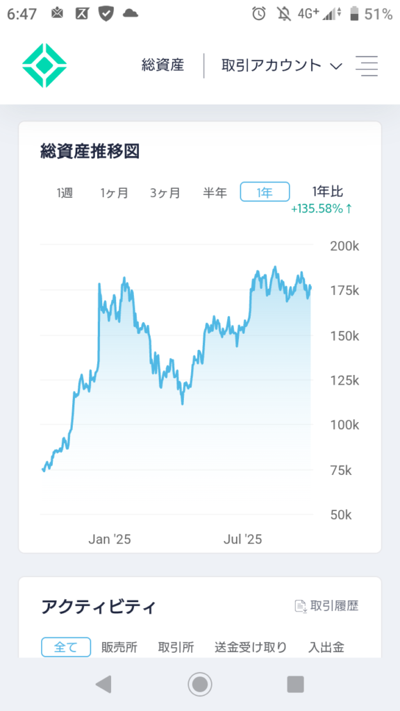 2022年12月からビットコインの自動積立開始までの期間に2万分を手動積み立てを開始。2025年1月からイーサリアム、リップルの自動積立開始までの期間に4万円をイーサリアム、リップル、ポリゴン、シバイヌ、ドージに分配手動積み立てを開始。