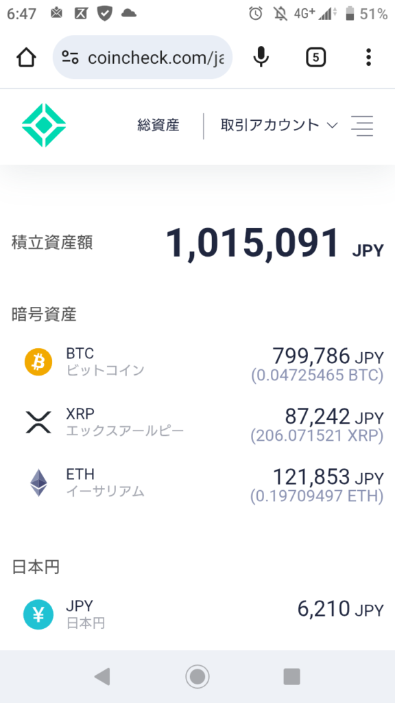 コインチェック | 仮想通貨(2024年課税所得参照税引き後) | 1,046,126円 |