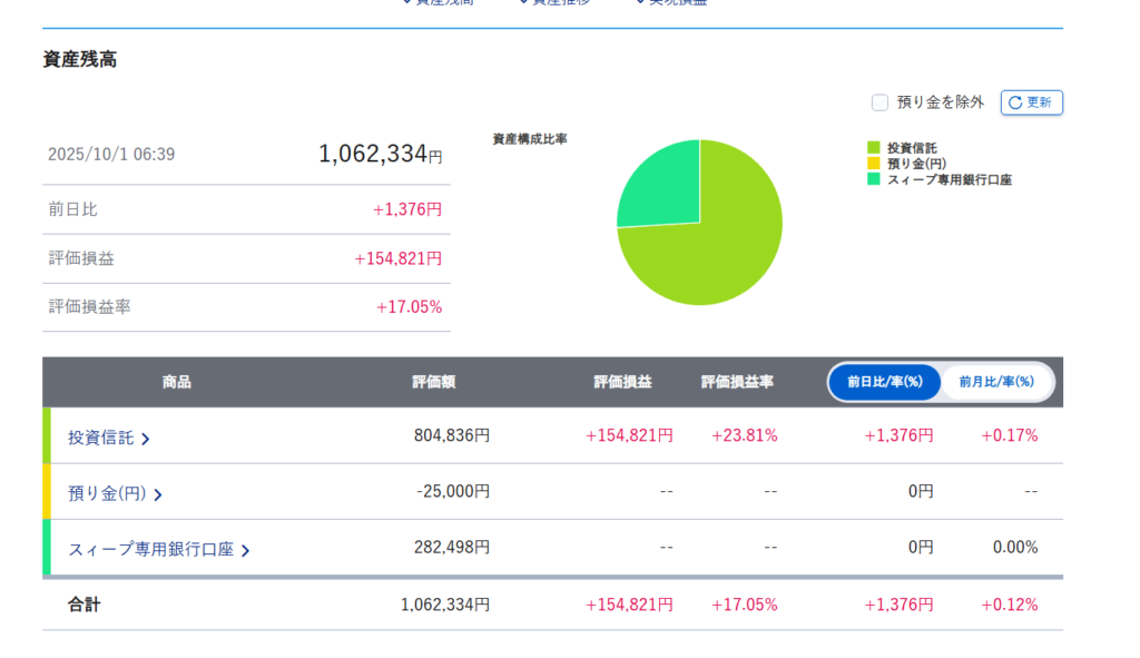 今月は積み立て反映日が遅いため、運用資金は先月と同じになります。
