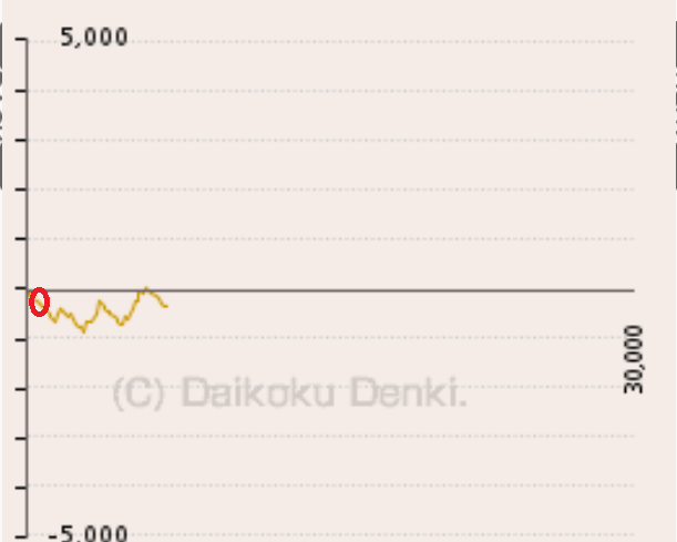 A店とB店は全然駄目だったので、気持ちを切り替えて近隣店舗のC店に行くと、タイミング良く超優秀台が空いたので、すぐに台確保して打ってみることにしました。